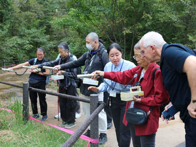 NaI(TI)シンチレーション式サーベイメーターを使って、室内およびモニタリングフィールドにて測定を行ないます。測定後、その結果について説明します。