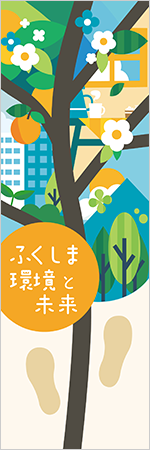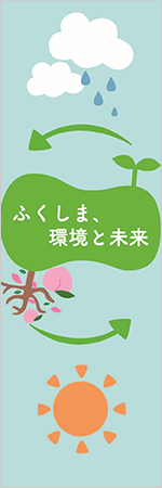 「ふくしま、環境と未来」のテーマを元に、再生・復興を思い「リプルンふくしま」に起用されている緑ロゴと福島県で有名な桃を合わせました。また、子供からご年配のすべての方々にも認知していただきたいと考え柔らかい配色、イラストをデザインしました。