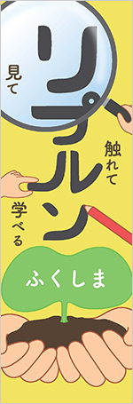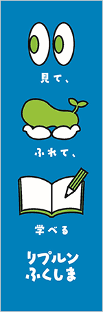 テーマである「見て、触れて、学べる」をイラスト化し、誰が見てもリプルンふくしまとは何ができる場所なのかがわかるデザインにしました。また、空や水を連想させる青と植物などを連想させる緑を使用し、自然を象徴する配色にしました。